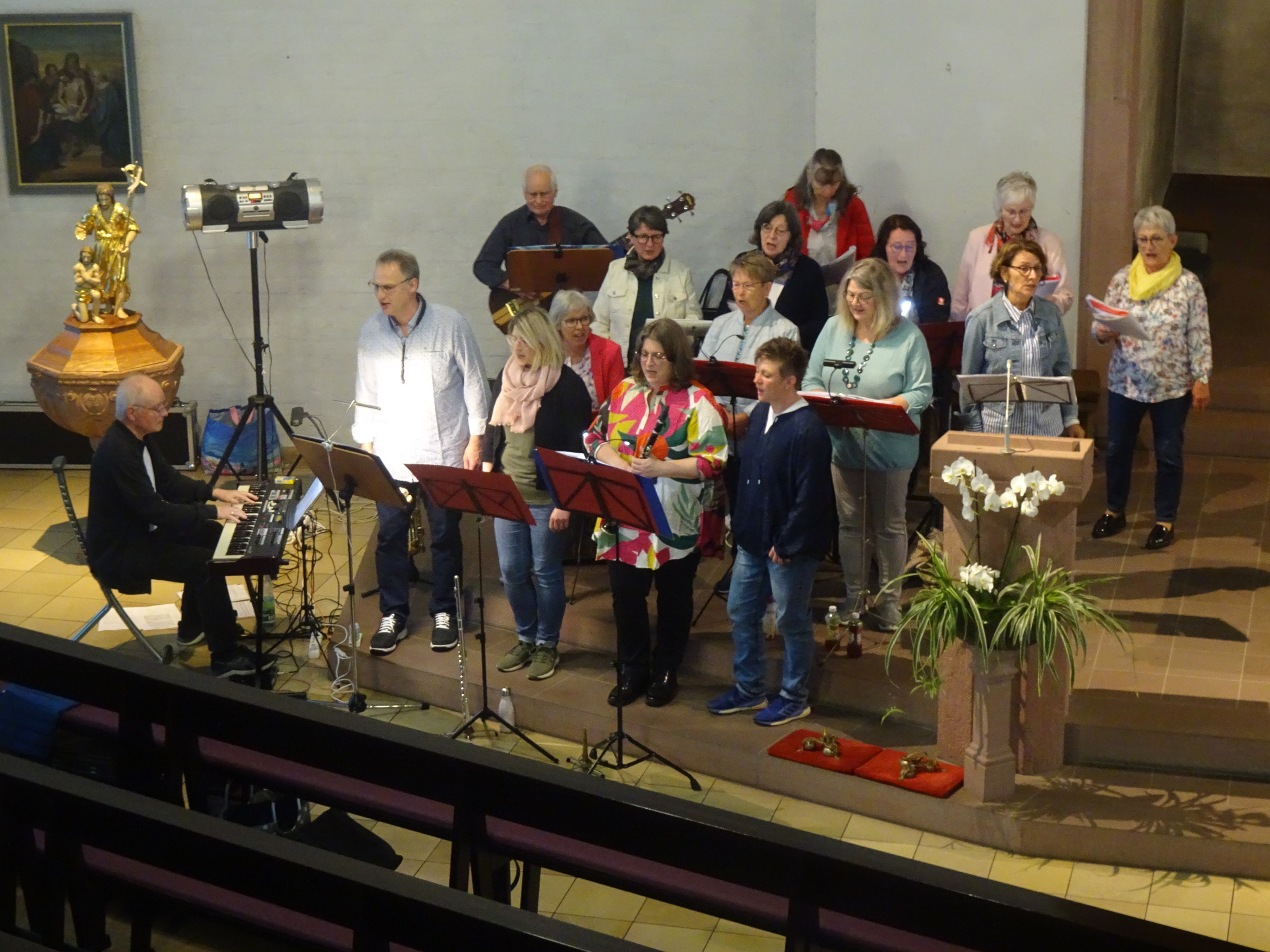 Wir feiern in der Osterzeit die österliche Freude – und Freude bedeutet Bewegung. Da passte es sehr gut, dass die Gruppe „Mehr...!“ die Gottesdienstbesucher am Samstagabend mit ihrer Musik erfreute. Ihre spirituellen und spritzigen Lieder luden zum Mitsingen und Mitklatschen ein. Eine besondere und bewegte Feier, die sich doch einige Teilnehmer nicht entgehen ließen. Vielen Dank an die Band „Mehr“, für diesen musikalischen Ohrenschmaus.