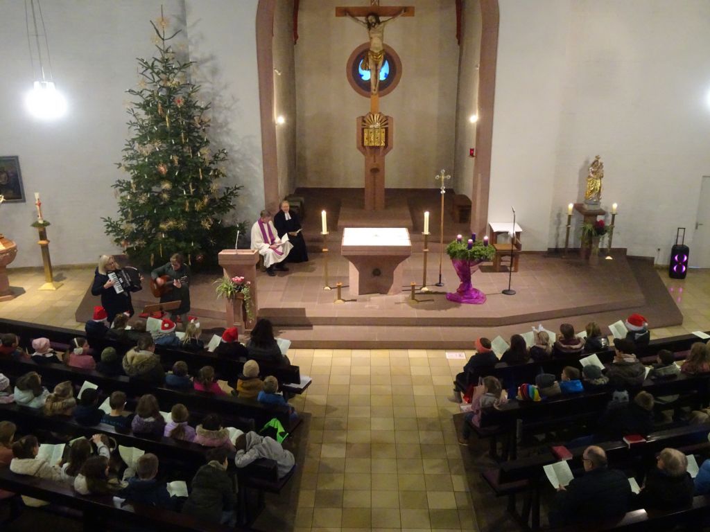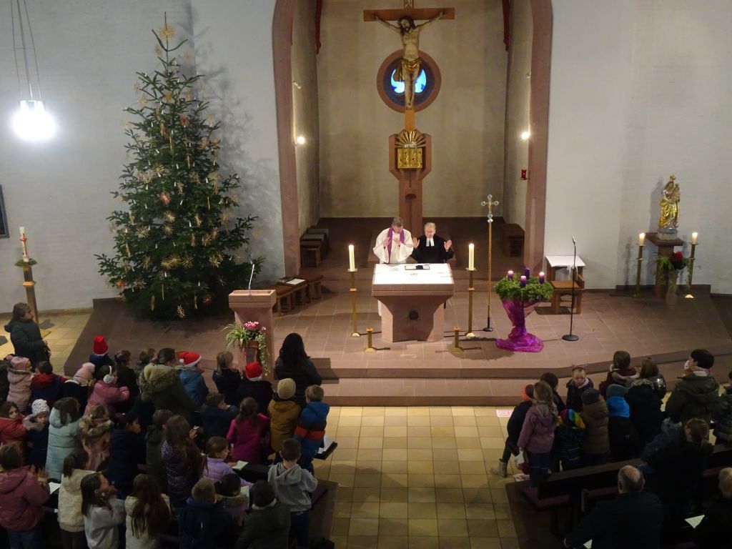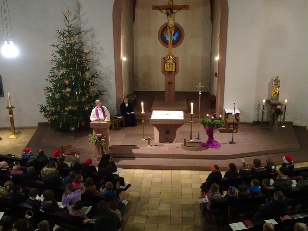 Natürlich freuen sie die Kinder schon auf das Weihnachtsfest und es gibt bestimmt auch Geschenke, verrieten sie dem Pfarrer. Pfr. Thoma hat aber auch einen Wunsch, den die Kinder erfüllen können. Wenn es an Weihnachten bei euch schön und gemütlich ist, dann sendet doch ganz still und leise eine Bitte an den lieben Gott: Lieber Gott, wir bitten um Frieden für alle Menschen auf der Erde. Diesem Wunsch schließen wir uns gerne an.