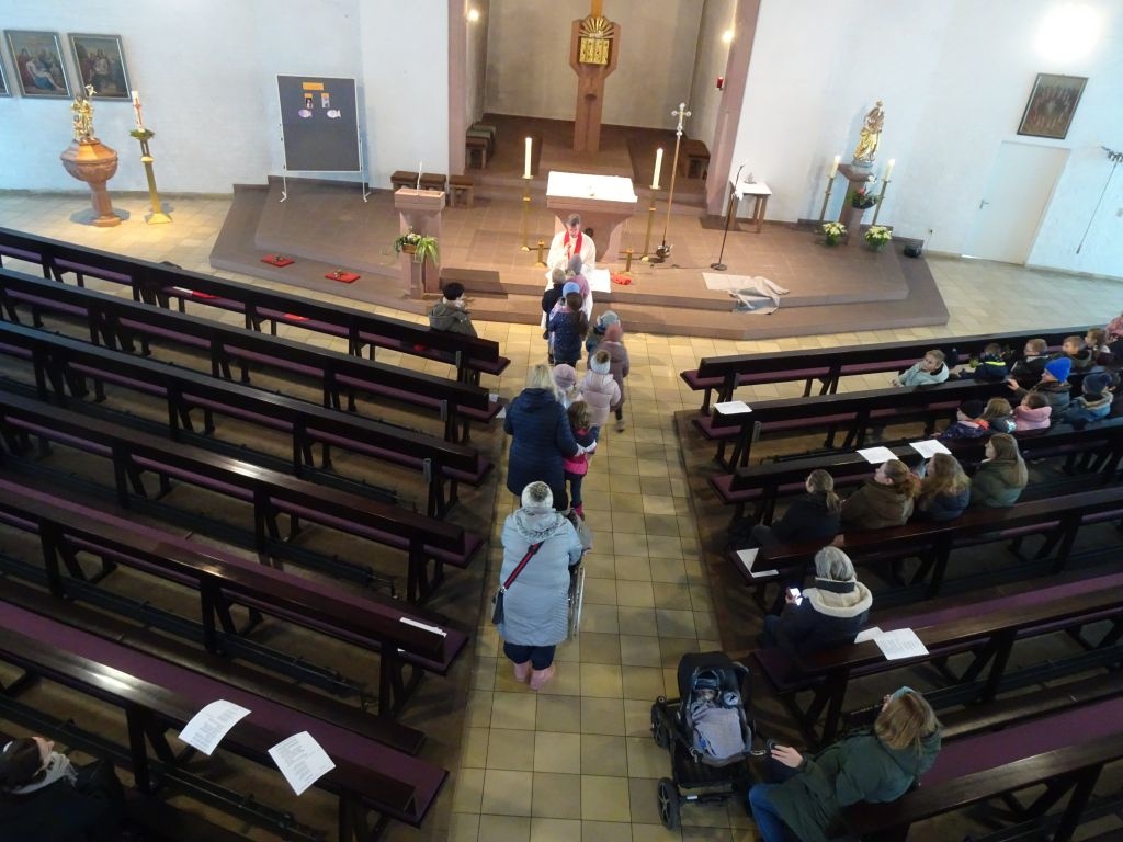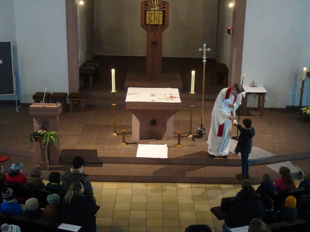 Ein sehr wichtiger Segen durfte in dieser Feier auch nicht fehlen, der Blasiussegen. Schnell stellten sich die Besucher in einer Reihe auf und ließen sich von Pfr. Thoma mit folgenden Worten segnen: Auf die Fürsprache des Hl. Blasius, bitten wir Gott, dass er uns beschützt und behütet vor allen Krankheiten.