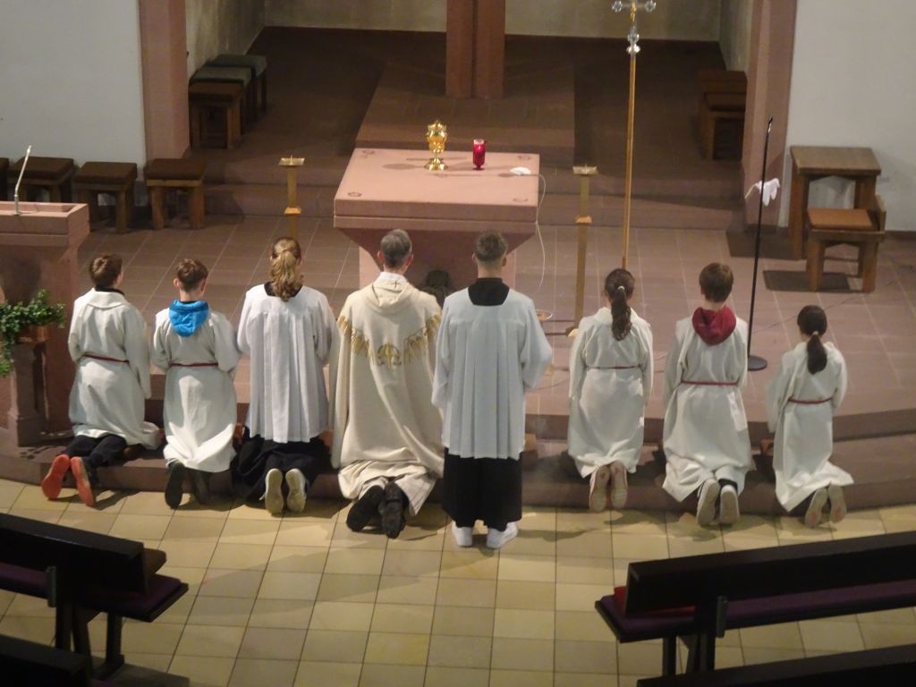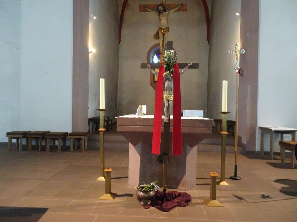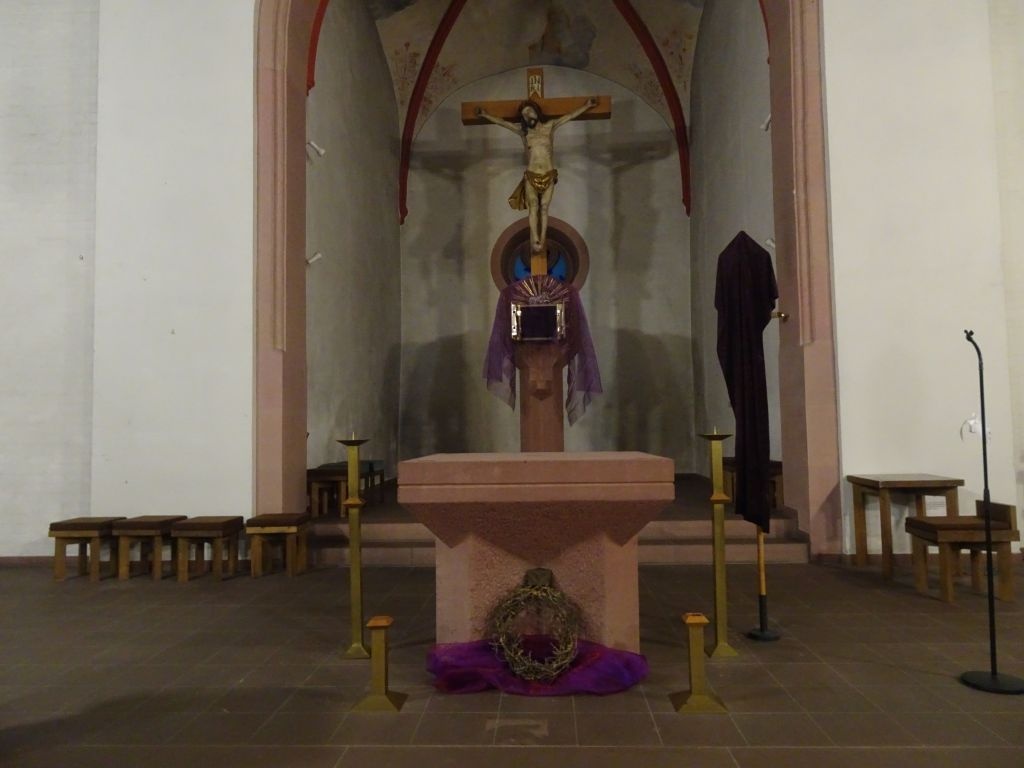 Heute beginnen die Ostergottesdienste, heute beginnt der Weg ins Dunkel des Karfreitags – mit der Hoffnung auf das österliche Licht. In der Abendmahlfeier erklingen zum Gloria noch einmal alle Glocken, dann wir es still. Am Ende der Feier wird der Altarraum abgeräumt, nach einer kleinen Anbetung endete die Messe. Zurück bleibt ein Altarraum nackt und kahl.