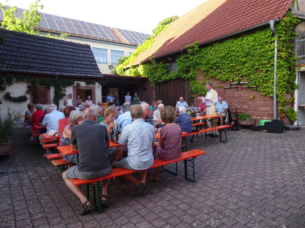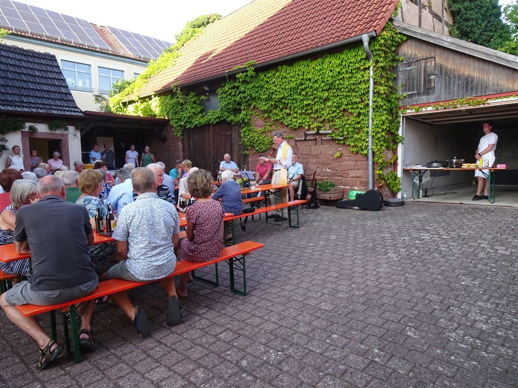 Pünktlich um 18.00 Uhr eröffnete Pfr. Thoma das Kirchenfest mit einem kurzen geistlichen Impuls, bei dem das bekannte Radegundislied nicht fehlen durfte. Bei einem Gläschen Wein, leckeren Schmankerl und guten Gesprächen ließen die Gäste diesen lauen Sommerabend ausklingen. Dazu passten hervorragend die stimmungsvollen Lieder unserer bewährten Scheunenmusik.