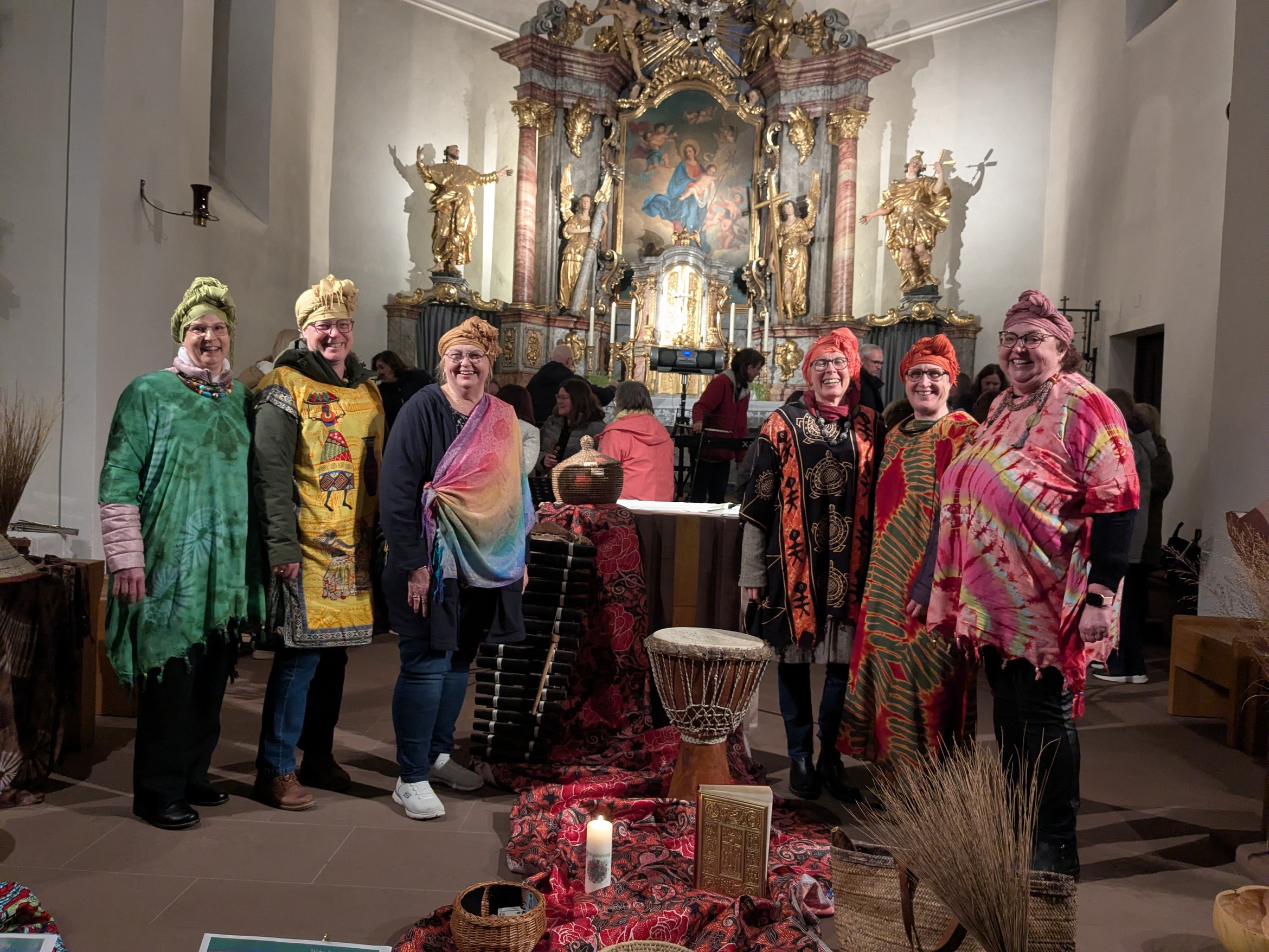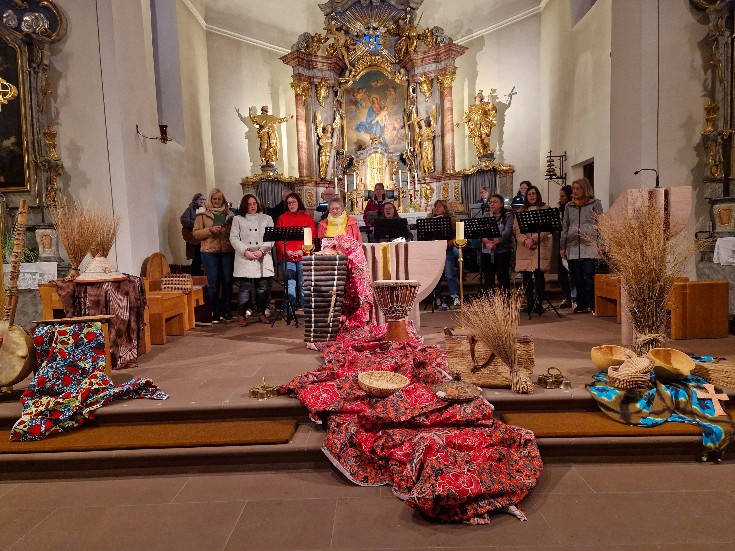 Die musikalische Gestaltung des Gottesdienstes mit Liedern aus Nigeria durch die Mitglieder der Gruppen Bumerang aus Seifriedsburg und Kreuz & Quer aus Wolfsmünster unter Leitung von Bianca Holzinger und Klaus Simon begeisterte alle ab dem ersten Lied und bewegte die Teilnehmer zum Mitklatschen und sogar zu Zwischenapplaus.