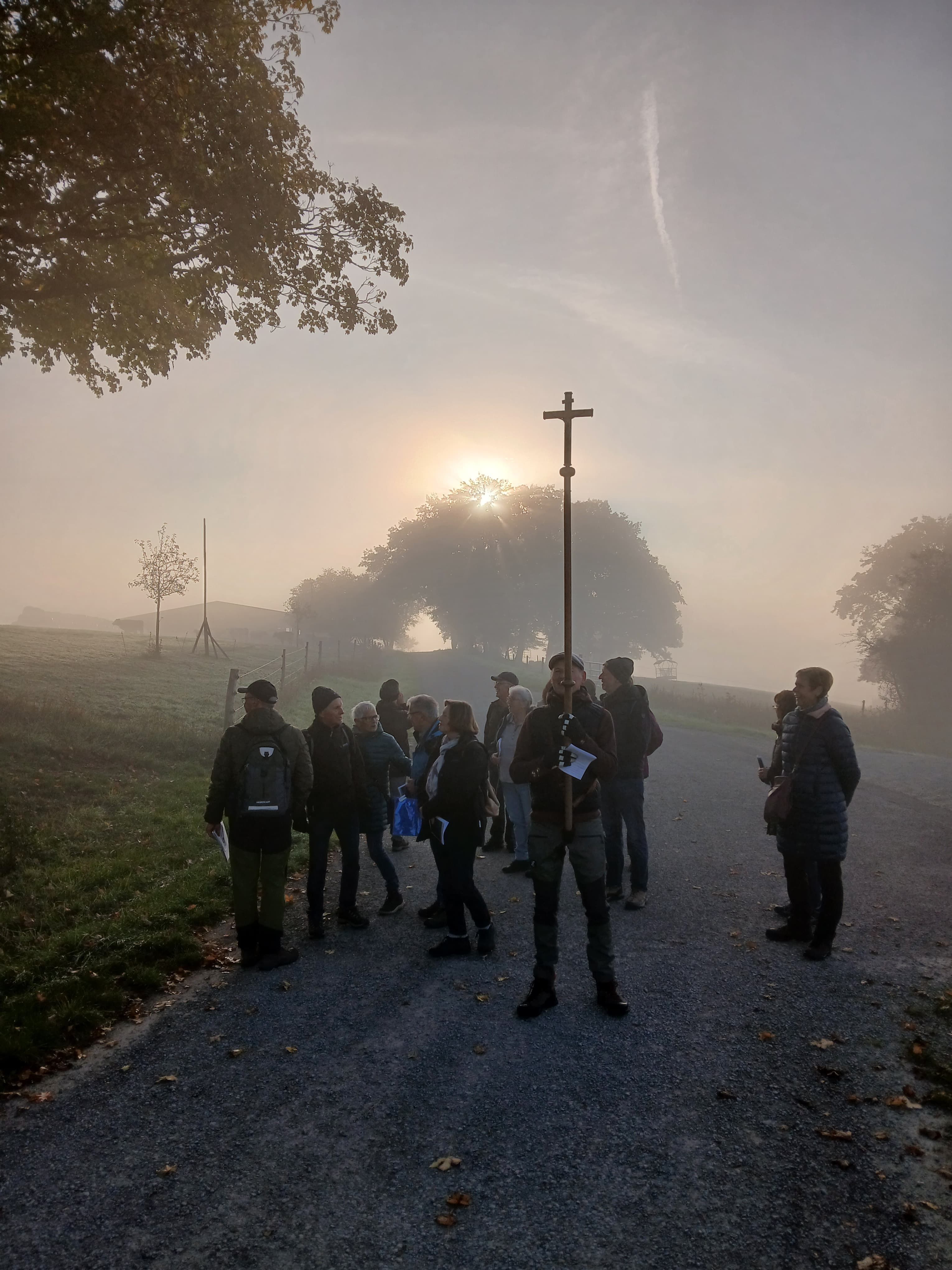 Unter dem Motto zum Heiligen Jahr „Pilger der Hoffnung“ machten sich Wallfahrer aus den Gemeinden Aura, Burgsinn, Fellen, Mittelsinn und Obersinn auf den Weg zum gemeinsamen Ziel am Auraer Kreuz. Begleitet von vertrauten Gebeten, besinnlichen Impulsen und Liedern, die unter die Haut gingen, erreichten die Pilger nach und nach den Treffpunk, wo bereits Kaffee und Kuchen zur ersten Stärkung warteten.