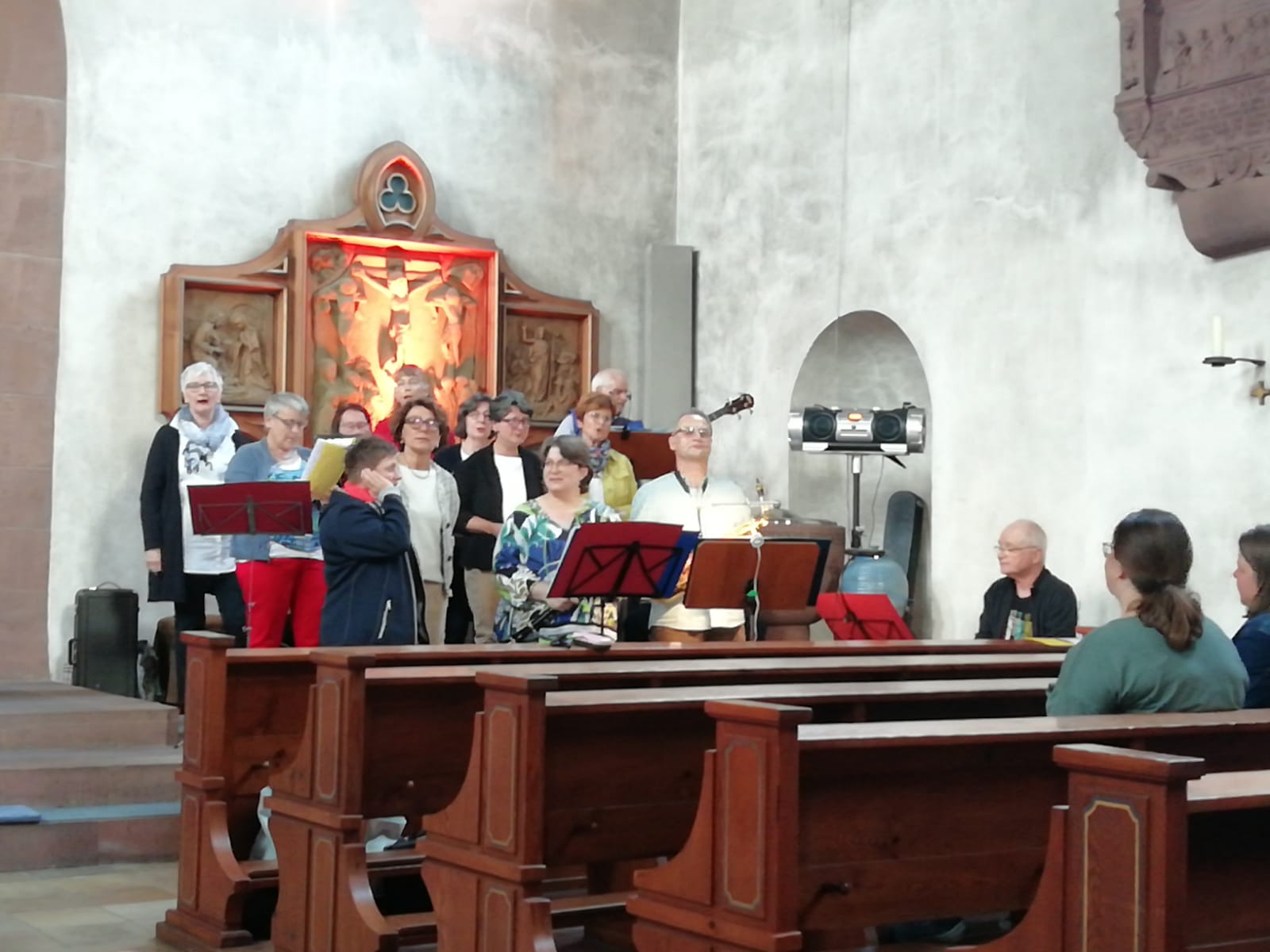 Neues Leben, ein Blütenmeer und wärmende Sonne – das ist typisch für den Monat Mai. Klaus Simon, Pastoralreferent i.R., griff diese Symbolik in seiner Begrüßung auf und brachte Maria als wärmende Ausstrahlung Gottes mit ins Spiel. Liedtitel wie „Licht in der Nacht“, „Wo die Sonne aufgeht“, „Himmelblau“ und „Sommerleicht“ erzeugten eine dichte Atmosphäre von Frühling und Sommer, Licht und Neuwerden.