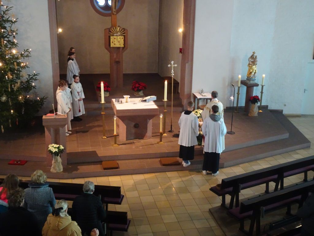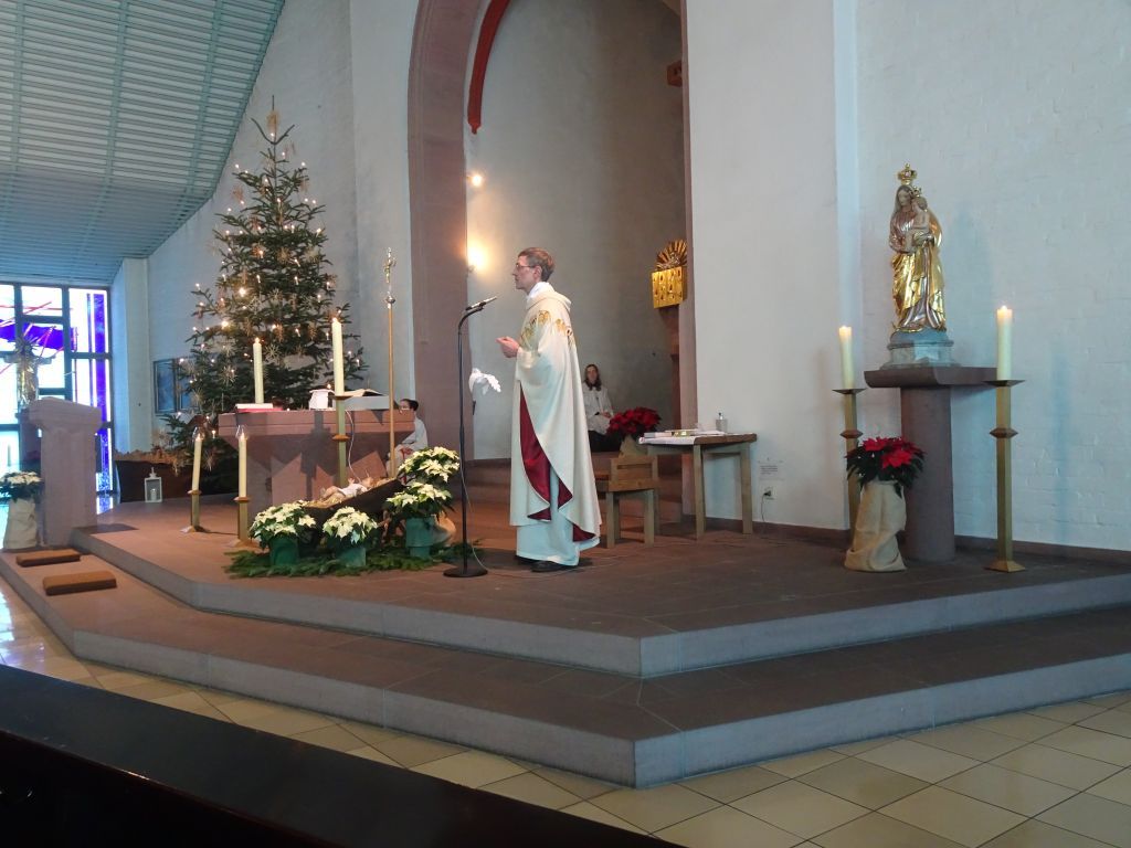 In einem Festgottesdienst, zelebriert von Pfr. Thoma, feierten die Gläubigen am ersten Weihnachtstag die Geburt Jesu und ließen sich auf die Weihnachtsbotschaft einstimmen. Musikalisch umrahmt wurde diese festliche Messe von der Kirchenschola und einem Querflötentrio.